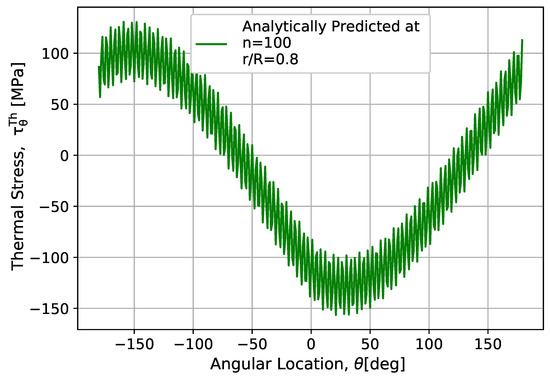 The circumferential thermal stress under full rotation where the number of cyclic loads is n = for the numeric analysis.