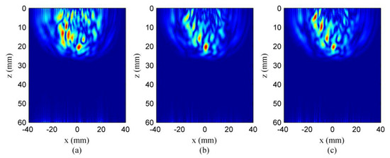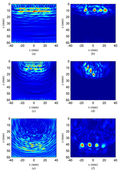 - Velichko, A.; Wilcox, P.D. An analytical comparison of ultrasonic array imaging algorithms. J. Acoust. Soc. Am. 2010, 127, 2377–2384. [Google Scholar] [CrossRef] [PubMed]