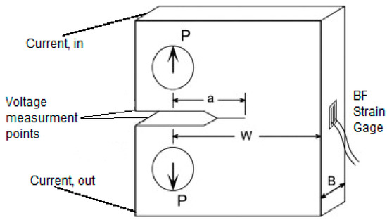 Potential drop method principle with a back face (BF) strain gage.