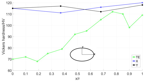 Vickers hardness data on the cross-section for both LTE and NLTE process.