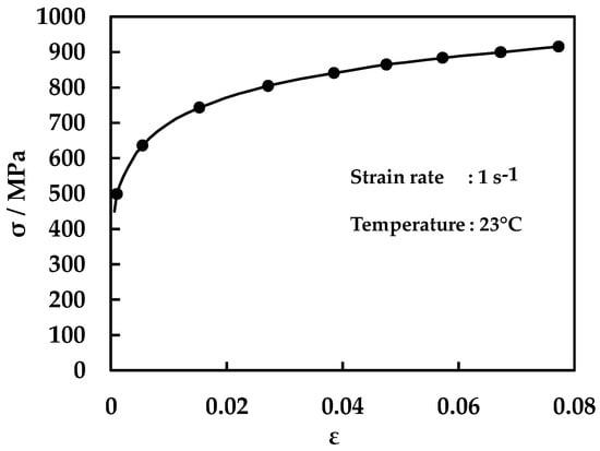 True stress versus true plastic strain at a strain rate of 1 s−1 at room temperature.
