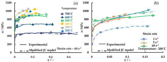 The original J-C model is unable to capture the flow stress for varying temperatures and strain rates. The results also show that the original J-C model is not able to predict the negative strain rate sensitivity and negative thermal softening in the temperature zone 200–400 °C for the strain rates 1 s−1, 5 s−1, and 60 s−1.