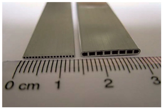 Examples of cross-sections of a micro-channel tube and a conventional tube. Reprinted from reference [58], copyright 2014, with permission from Elsevier.