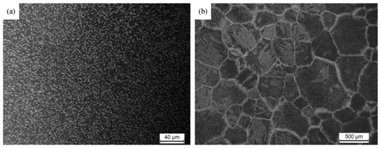 The specimens with the specification of 100 × 100 × 100 mm machined from the as-received material were heated to 950 °C in the resistance furnace SXL1200 (manufactured in Shanghai, China), held for 120 min and then cooled in furnace (FC) to coarsen the prior β grains. The average β grain size is about 500 μm, as shown in Figure 2b. The specimens after prior heat treatment were cut to cylinder samples of φ10 mm × 15 mm by wire-electrode cutting for subsequent heat treatment.