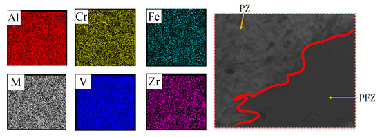 Average weight of elements of Ti-55531 alloy in PZ and PFZ.