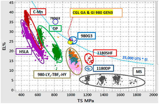 - Goodwin, F.E.; Silva, E.A. Current Priorities in Developing, Forming and Joining of Advanced Galvanized Sheet Steels. In Proceedings of the GALVATECH 2017: 11th International Conference on Zinc and Zinc Alloy Coated Steel Sheet, Tokyo, Japan, 12–16 November 2017. [Google Scholar]
