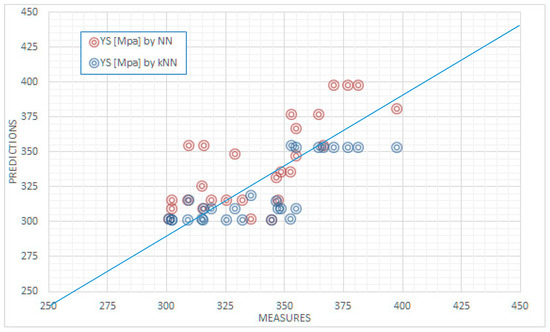 Comparing these properties, it is also possible to recognize, in general, how prediction on UTS and YS seems better than those on ε and E.