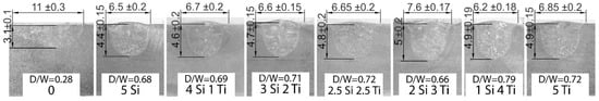 | Measurement Area | 0 | 5Si | 4Si1Ti | 3Si2Ti | 2.5Si2.5Ti | 2Si3Ti | 1Si4Ti | 5Ti |