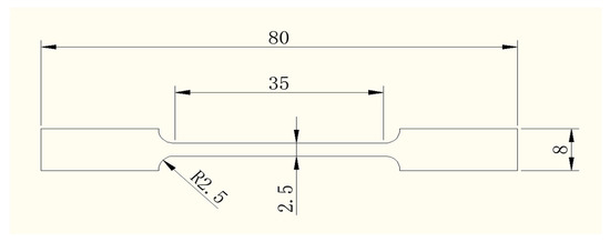Uniaxial tension tests were conducted on miniature dogbone specimens using a WDW-300 universal testing machine (Kexin Experimental Instrument Co., Ltd, Changchun, China) from the parts that were hot-stamped at different die temperatures. The specimen size is shown in Figure 9.
