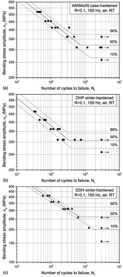 18], the authors were able to rationalize the fatigue endurance of high-strength steels just by scaling the fatigue strength of the fully dense reference material by Ac. In such spongy materials, fatigue damage usually occurs very early and is located at the necks between powder particles, which are the weakest point of the microstructure. In this way, the fatigue is diffused rather than localized as it is in conventional materials and proceeds until eventual failure by coalescence of widespread defects [