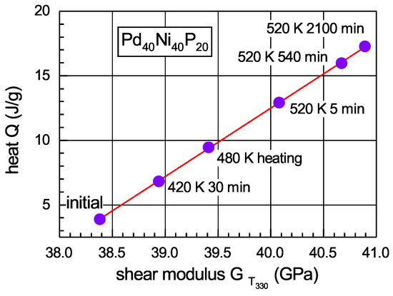 - Kobelev, N.P.; Khonik, V.A. Theoretical analysis of the interconnection between the shear elasticity and heat effects in metallic glasses. J. Non-Cryst. Sol. 2015, 427, 184–190. [Google Scholar] [CrossRef]
