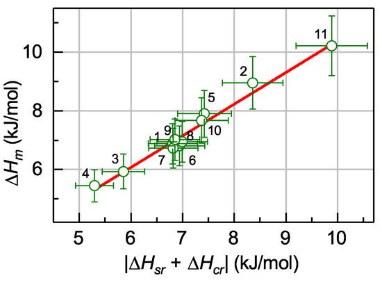 5.4. Relation between the Enthalpies of Relaxation, Crystallization and Melting