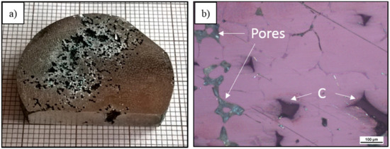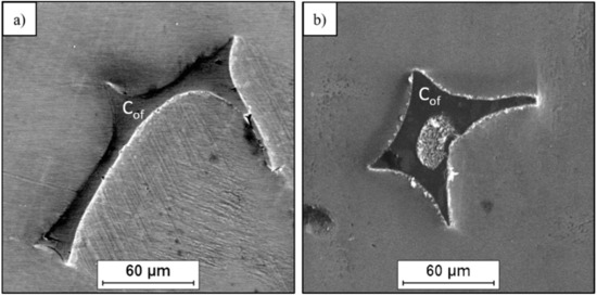 Note that in the composites that are processed via infiltration methods, two types of pores located can be formed, i.e., at the interface and within the metal matrix. One type arises because of the foam filling by the liquid metal, while the other type appears because of metal shrinkage. Moreover, the acceptable value of pressure in infiltration process of vitreous carbon skeleton (Cof) is limited because of the possibility of it being damaged. Furthermore, the influence of pressure on the final product’s porosity reduction is not so effective compared with the traditional metal die casting processes.
