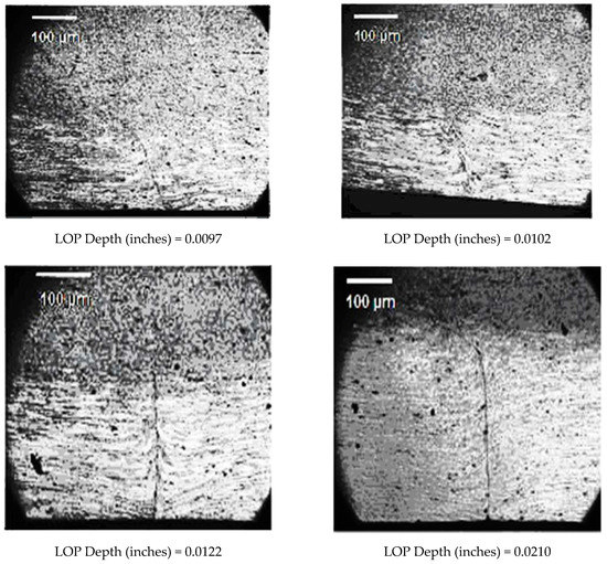 Metallography of lack of penetration (LOP) defects in 3.175 mm (0.125 in) thick AL 7075-T73 panels. Reproduced with permission from [69], Taylor & Francis, 2019.