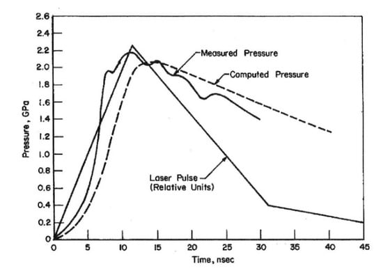 During this same time period, 1971–1974, others were also pursuing investigations of laser shock-induced material effects. O’Keefe et. al. investigated the laser shock-induced deformation modes in thin 6061-T6 aluminum and stainless steel targets using a Nd-glass laser and fused quartz or Plexiglass for confining the plasma [