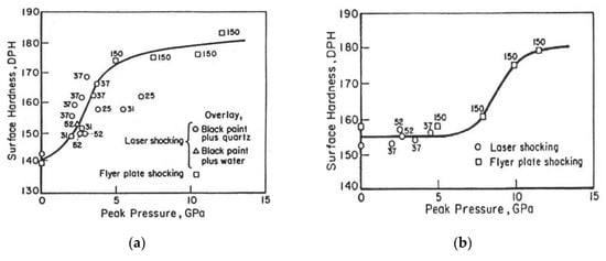 Figure 8a). The T851 condition did not show any hardening with increasing pressure up to 5 GPa, the highest laser shock pressure (