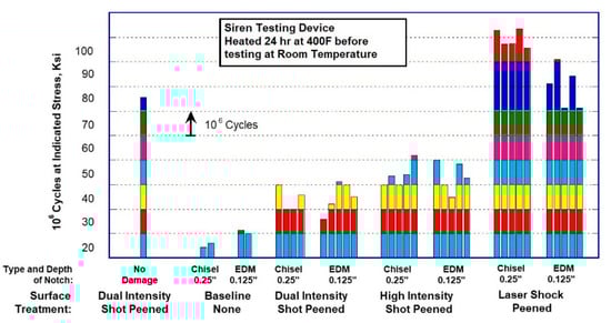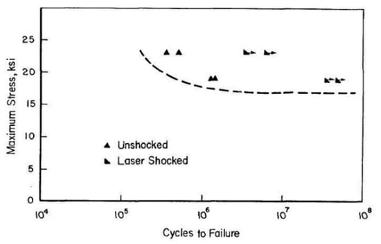 Figure 10. At 25 ksi (172.3 MPa), laser shocked specimens ran out at 5 × 10