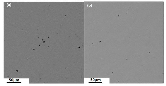 (2) Characterization of inclusions in the floater and steel samples while using scanning electron microscope (TESCAN, VEGA 3, Brno, Czech Republic) and energy dispersive spectroscopy (Oxford Instruments, Inca X-Max 50, Buckinghamshire, UK). The physical characteristics of the floaters were also visually examined. Heating the samples in a MoSi2 furnace determined the densities of the floater and the alloy in the liquid phase. High purify argon gas (99.9999%) was passed over the sample (1 L/min) at atmospheric pressure during the measurement. The samples (20 g) were added to a MgO crucible that was placed in a graphite susceptor in a MoSi2 furnace. The fluctuation of the melt temperature was controlled within ±5 °C. The vertical temperature distribution was maintained within 5 °C. Three samples of the 321 steel and the floater in the mold were examined.