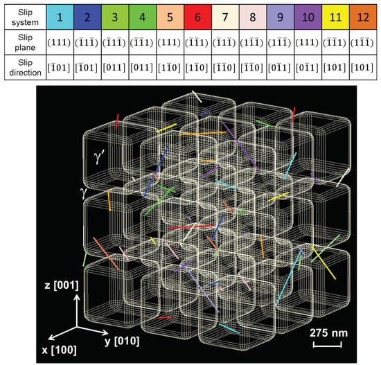 - Huang, M.; Zhao, L.; Tong, J. Discrete dislocation dynamics modelling of mechanical deformation of nickel-based single crystal superalloys. Int. J. Plast. 2012, 28, 141–158. [Google Scholar] [CrossRef]