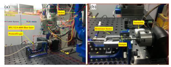 (a) Robot-controlled laser-welding system; (b) preheating device used in this study.