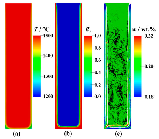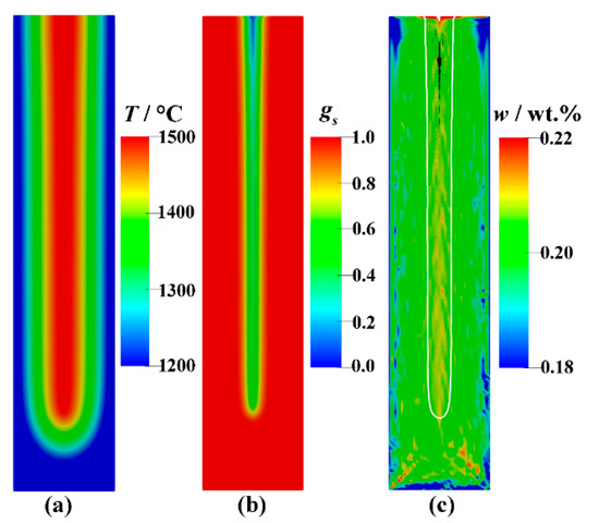| Solutal expansion coefficient for C, βw[C] | wt.%−1 | 1.10 × 10−2 |