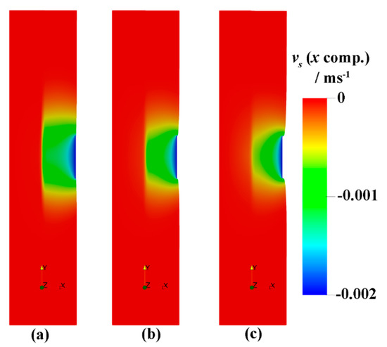 - If the deformation flag is true, the stabilized multi-phase pressure correction method is utilized to solve Equations (1)–(6) and (9)–(15). Otherwise, the stabilized pressure correction method is used to solve Equations (1)–(5), where the solid velocity is zero;