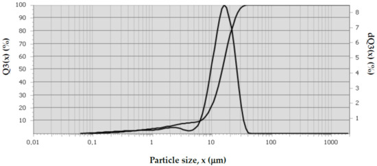 Figure 1 shows the particle size distribution of the starting powder; an almost monomodal distribution can be assessed, centered around an average size of about 15 μm.