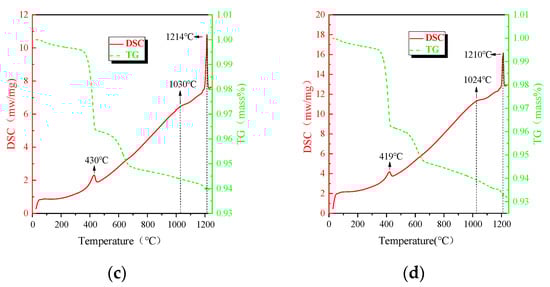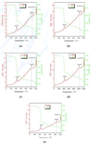 3.1. The TG-DSC Analysis of Sintering Mixture with Different Al2O3 Content