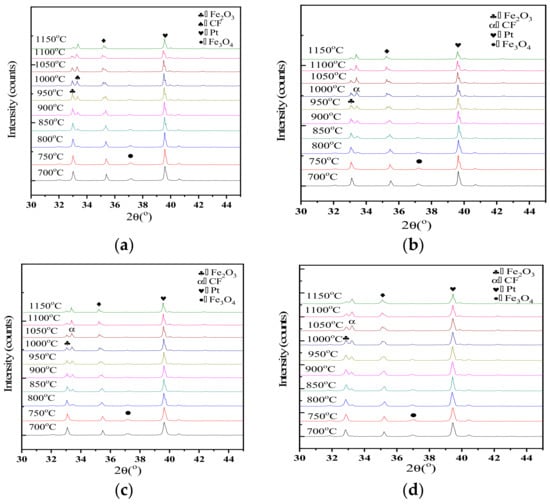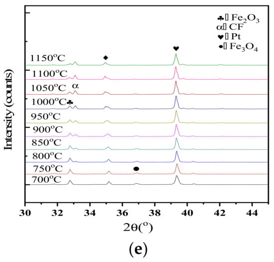 - Both Ca2Fe2O5 and CaFe2O4 were formed at different concentrations of Al2O3. The formation of Ca2Fe2O5 (C2F) occurred much earlier than CaFeO4(CF). The C2F and CF formed at approximately 600 °C and 700–800 °C, respectively. As Al2O3 increased, the melting temperature decreased.