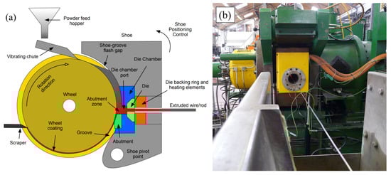 - Pardoe, J.A. ‘Conform’ Continuous Extrusion of Metal Powders into Products for Electrical Industry: Development Experience. Powder Metall. 1979, 22, 22–28. [Google Scholar] [CrossRef]