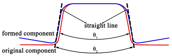 Figure 4 shows the scheme of springback angle measurement. The outer contour and the inner contour are the cross sections of the formed component and the original component, respectively. is the sidewall angle of the formed component and = 20° is the original angle. was defined as a springback angle.