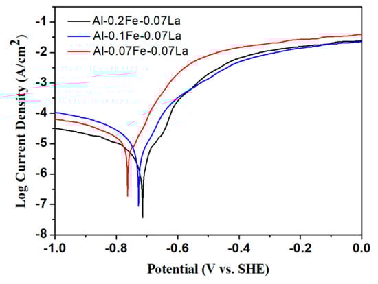 Yang, X.; Ding, D.; Xu, Y.; Zhang, W.; Gao, Y.; Wu, Z.; Chen, G.; Chen, R.; Huang, Y.; Tang, J. Tensile Properties and Corrosion Resistance of Al-xFe-La Alloys for Aluminium Current Collector of Lithium-Ion Batteries. Metals 2019, 9, 706. https://doi.org/10.3390/met9060706