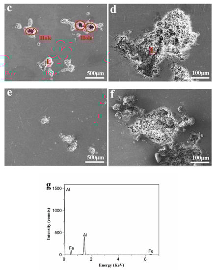 - Park, J.O. Influence of Fe-Rich Intermetallic inclusions on pit initiation on aluminum alloys in aerated NaCl. J. Electrochem. Soc. 1999, 146, 517. [Google Scholar] [CrossRef]