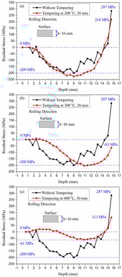 | Residual Stress | Before Tempering | After 200 °C Tampering | After 300 °C Tampering | After 600 °C Tampering |