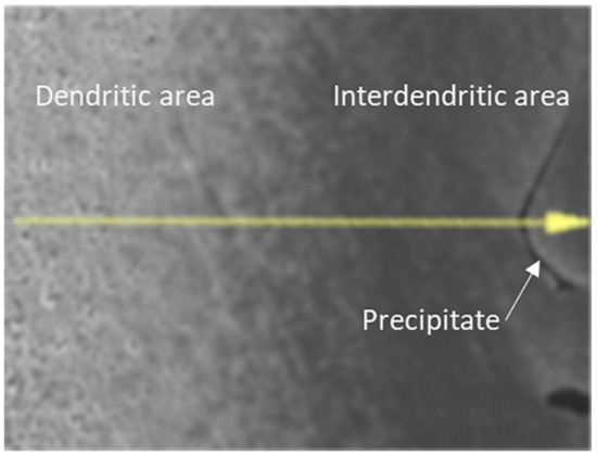 Example of an EDX line analysis from dendritic area to the interdendritic area.