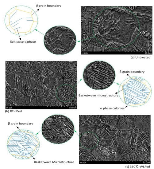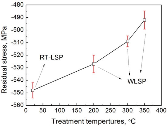 - Meng, X.K.; Zhou, J.Z.; Su, C. Residual stress relaxation and its effects on the fatigue properties of Ti6Al4V alloy strengthened by warm laser shock peening. Mater. Sci. Eng. A 2016, 680, 297–304. [Google Scholar] [CrossRef]