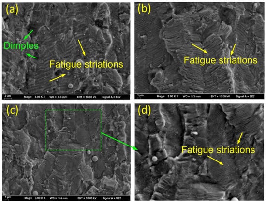 - Pant, B.K.; Pavan, A.H.V.; Prakash, R.V. Effect of laser shock peening and shot peening on fatigue striations during FCGR study of Ti6Al4V. Int. J. Fatigue 2016, 93, 38–50. [Google Scholar] [CrossRef]