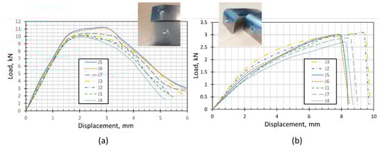 Representative experimental force–displacement curves for (a) the shear, and (b) peel tests of different joints.