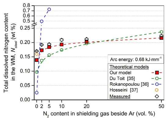 Varbai, B.; Májlinger, K. Physical and Theoretical Modeling of the Nitrogen Content of Duplex Stainless Steel Weld Metal: Shielding Gas Composition and Heat Input Effects. Metals 2019, 9, 762. https://doi.org/10.3390/met9070762