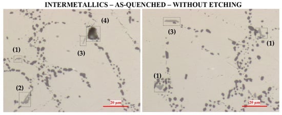 2.2.1. AlSi7Cu3.5Mg0.15 (Mn, Zr, V) As-Cast and As-Quenched Characterization