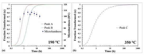 3.4. Comparison of Isothermal Evolution from LKSZ Kinetic Model with Microhardness