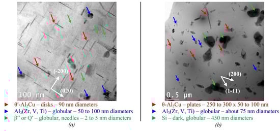 - Si-containing Al3(Zr, V, Ti) precipitates are present in the AlSi7Cu3.5Mg0.15 (Mn, Zr, V) alloy microstructure for all tested aging conditions.