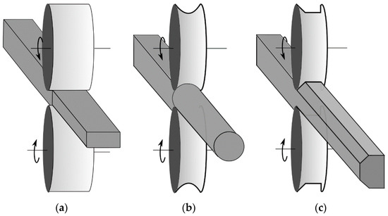 - Kikuma, T.; Yamada, K. Progress of Finite Element Simulation for Rolling Processes. In Proceedings of the 7th International Conference on Numerical Methods in Industrial Forming Process, Toyohashi, Japan, 18–20 June 2001. [Google Scholar]