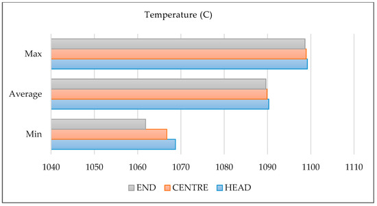A sensitivity study based on the temperature field of a slice at the end of the simulation is shown in Figure 13. A comparison of three slice position options, as described in Table 1, is made. The same rolling schedule is considered with the same material properties. Even though the total deformation and time are the same for each simulation, positions of the deformations are different. This leads to a different cooling history and different heat loss at the end for each initial slice position.