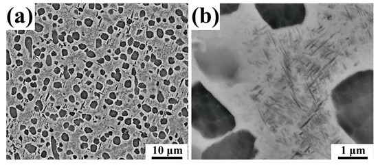 Ti-55531, one of the near-β titanium alloys, shows properties of high strength, good toughness, and remarkable hardenability, and has thus been commercially used in aircraft components [1,2,3,4,5,6,7,8,9,10]. It is well known that the properties of near-β titanium alloys are closely related to the microstructure features of the α phase, including size, shape, chemical composition distribution, and so on. The shape of α phase in commonly used Ti-55531 is globular, lamellar, and/or acicular. Alloys containing globular α phase have superior ductility [11,12] due to the relatively soft nature and high damage tolerance of globular α [13]. Alloy with a high volume fraction of fine acicular α show high strength because of the precipitation-strengthening effect [11,12]. The combination of globular α and acicular α together with the β matrix give rise to a balance between ductility and strength [13]. The bimodal microstructure has been widely used in the industry.