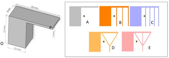 In order to investigate the effects of different support structures on overhang warping, five models (model A to model E) were designed and build using the electron beam melting (EBM) process as shown in Figure 1. Model A was a reference part without any support structure, whereas model B and C were designed with straight column support as shown in Figure 1. Models D and E were designed using Y-shaped supports with a different middle column as illustrated in Figure 1. For all models the thickness of the support columns was 0.6 mm, which is the minimum wall thickness that can be produced using the available EBM technology []. The computer-aided design (CAD) models were converted to stereolithography (STL) format and imported to Magics software for adjusting the orientation and fixing the STL model’s errors. Titanium powder alloy (Ti-6Al-4V) with particle sizes ranging between 53–107 µm with a mean of around 75 µm was used in the current study as shown in Figure 2.