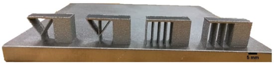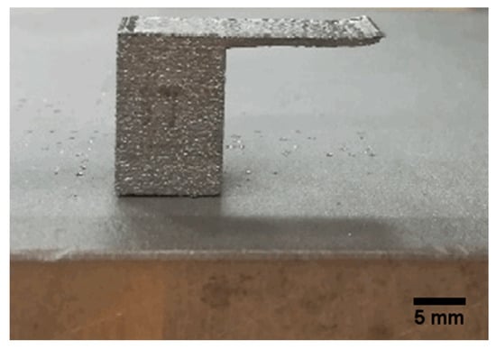 The fabricated model without support structure (model A) using EBM is shown in Figure 7. The warping effect at the extreme point on the overhang edge can be clearly observed in the fabricated model. Figure 8 shows models fabricated with support structures. As depicted, the warping effect was very much suppressed due to support columns and these models have comparable deformations.