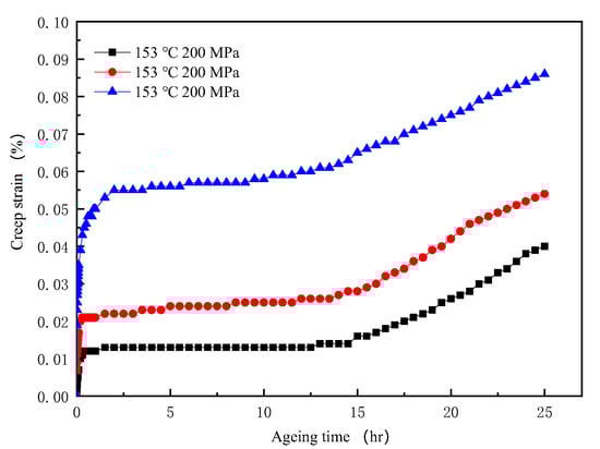 Figure 9 shows the division of creep curves with different stages of aging process. The creep curves can be divided into four stages.