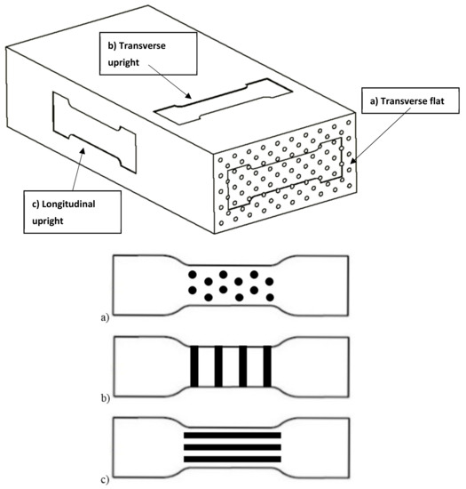 The alignments were transverse upright to the welding direction, transverse flat to the welding direction and longitudinal upright the welding direction. These orientations are shown schematically in Figure 3. The different alignments were used to investigate whether an anisotropic behavior occurs and whether the multi-material design is realistic.
