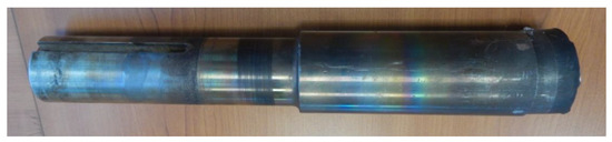 The materials employed for the study corresponded to two rollers (identified as BR1 and BR2) that were found collapsed during furnace maintenance stops, both showing the fracture in the motor side journal (Figure 4). Both rollers were in the first section of the furnace, where the formats enter the austenitizing chamber. Following the detection of the two broken rollers, all journal fillet radiuses, both motor side and expansion side, were penetrant dye inspected for the presence of cracks in all the rollers of the furnace. Despite no cracks being detected, five rolls were randomly selected and disassembled from the furnace to confirm the absence of cracks in the fillets by metallographic cross sectioning and the absence of cracking was confirmed. The failure was thus specific to the two affected rollers, which were studied more in depth.